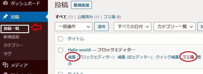 投稿一覧をクリックすると、個別ペーシのサンプルが表示されます。