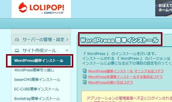 サイト作成ツール→WordPress簡単インストールへ進もう!! |