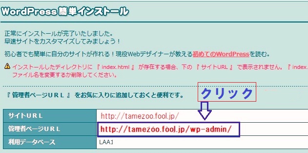 WordPress簡単インストール画面が出るよ!!ちゃんと表示されたかな??? |