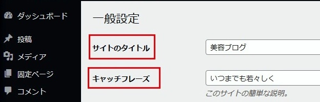 サイトのタイトルとキャッチフレーズを入力したら・・![]() →変更を保存 |