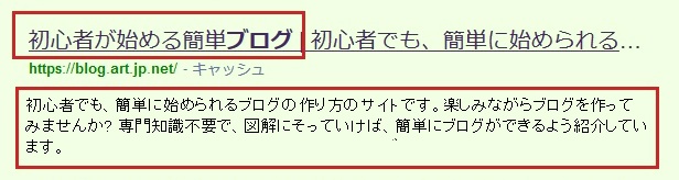 | キャッチフレーズとは、webの検索結果でタイトルの下に表示される説明文のことで、「メタディスクリプション」とも言います。 110文字以内に収めましょう!! ![]() |